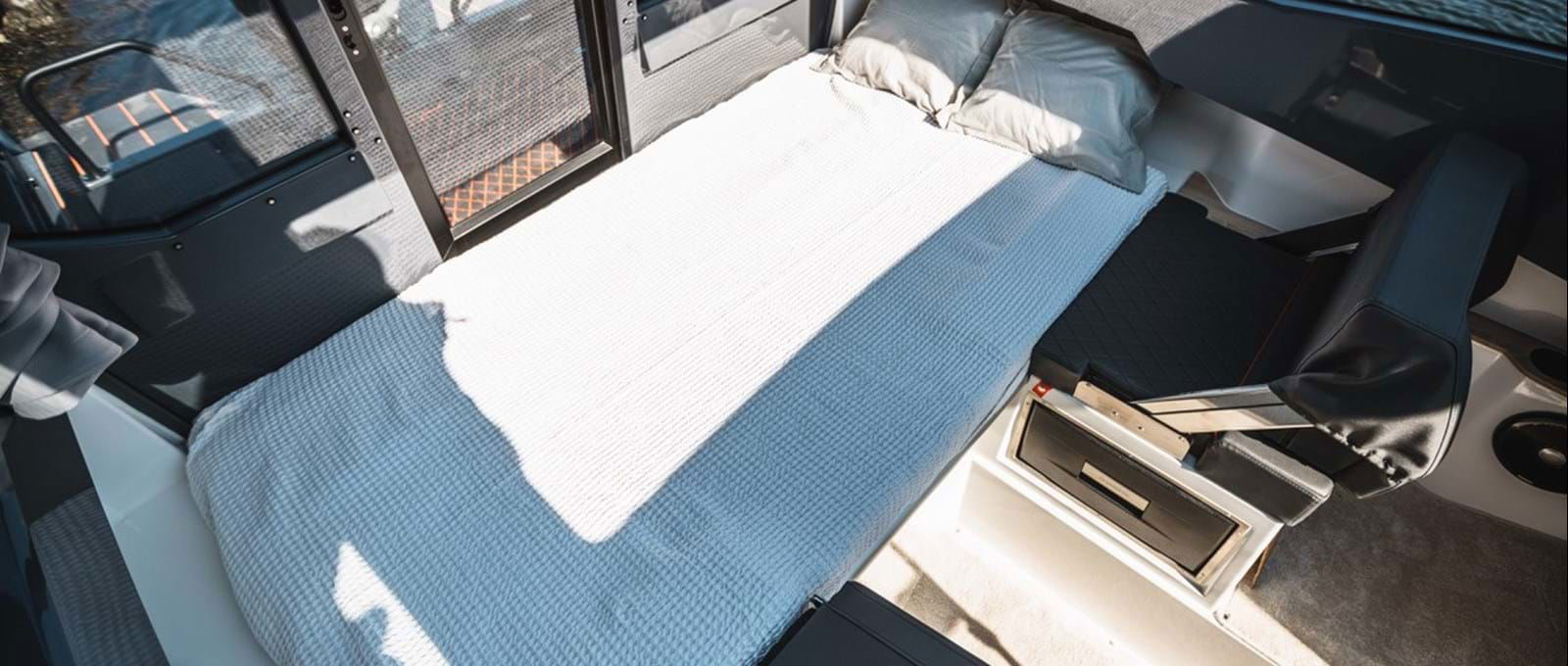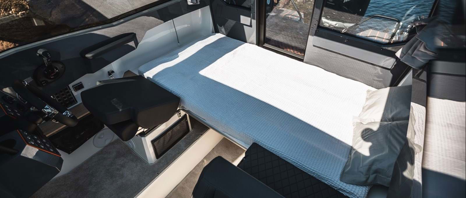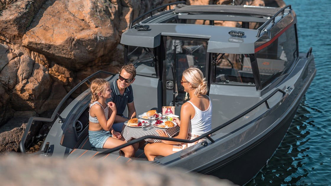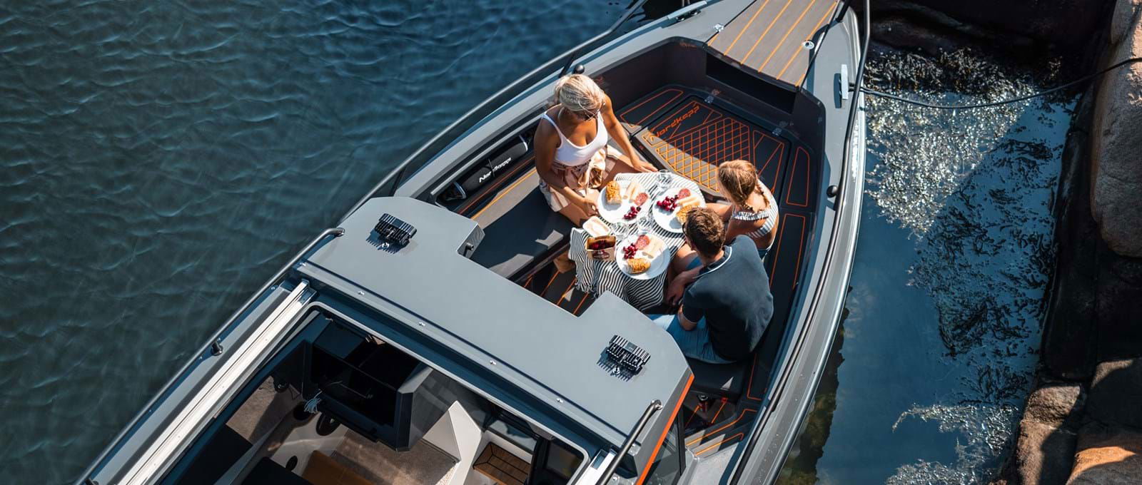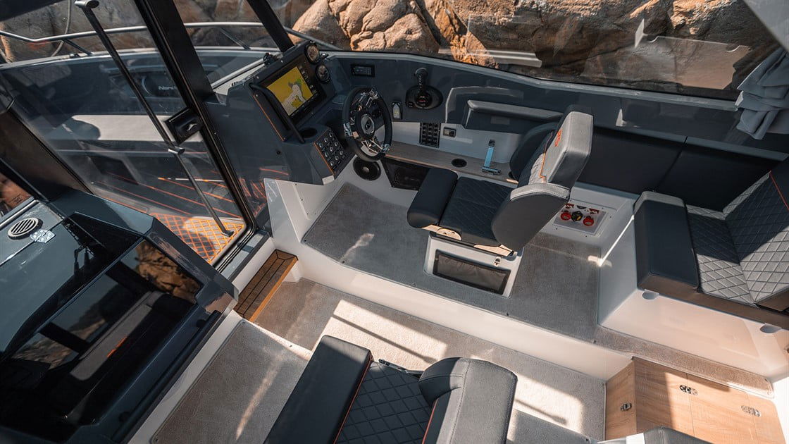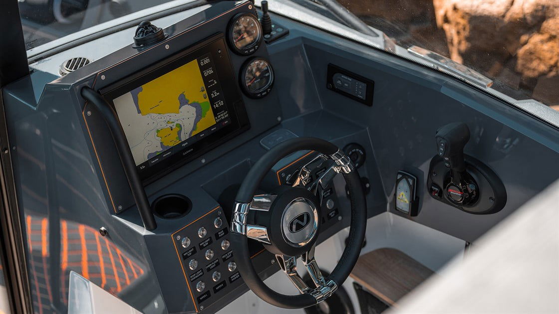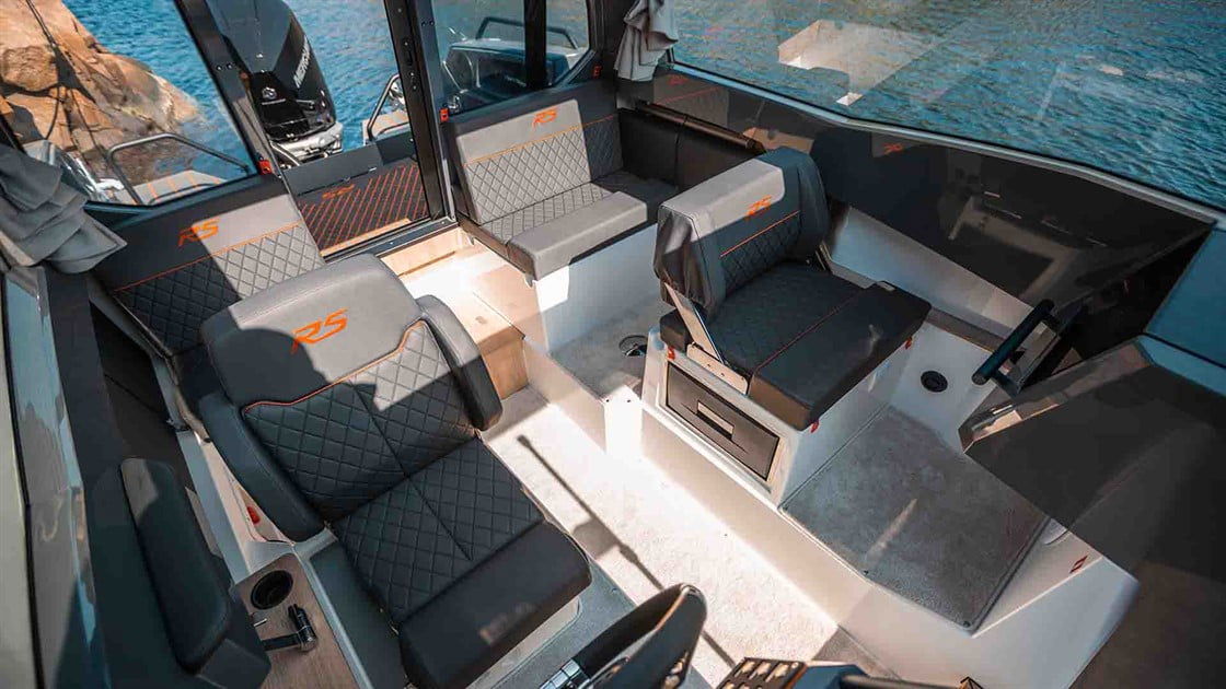 I Nordkapps RS-modeller ska du känna det lilla extra. Den ergonomiska utgångspunkten i förarsätet med sport-instrumentering gör att du snabbt känner kontrollen. Härdat glas i båtens 365-graders fönster ger dig en fullständig överblick, och den stora akterdörren ger dig och dina passagerare enkel tillgång till akterdäcket.