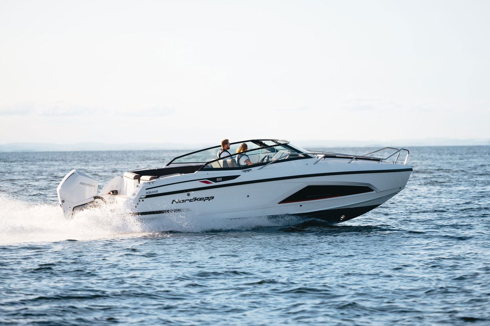 Nordkapp Noblesse 830 kommer utrustas med tystgående, kraftfulla och utsläppsvänliga motorer från Mercury. Båten har genom sin banbrytande skrovdesign en effektiv användning av all sin kraft, allt för att ge dig en så låg förbrukning som är möjligt för denna typ av båt. Mercury motorerna utrustas med elektroniska reglage, något som ger en sömlös övergång från neutral till växel.